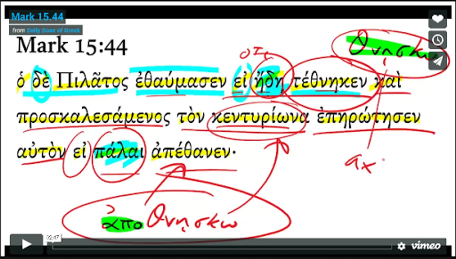 Watch a two minute video discussing a verse of the Greek New Testament.