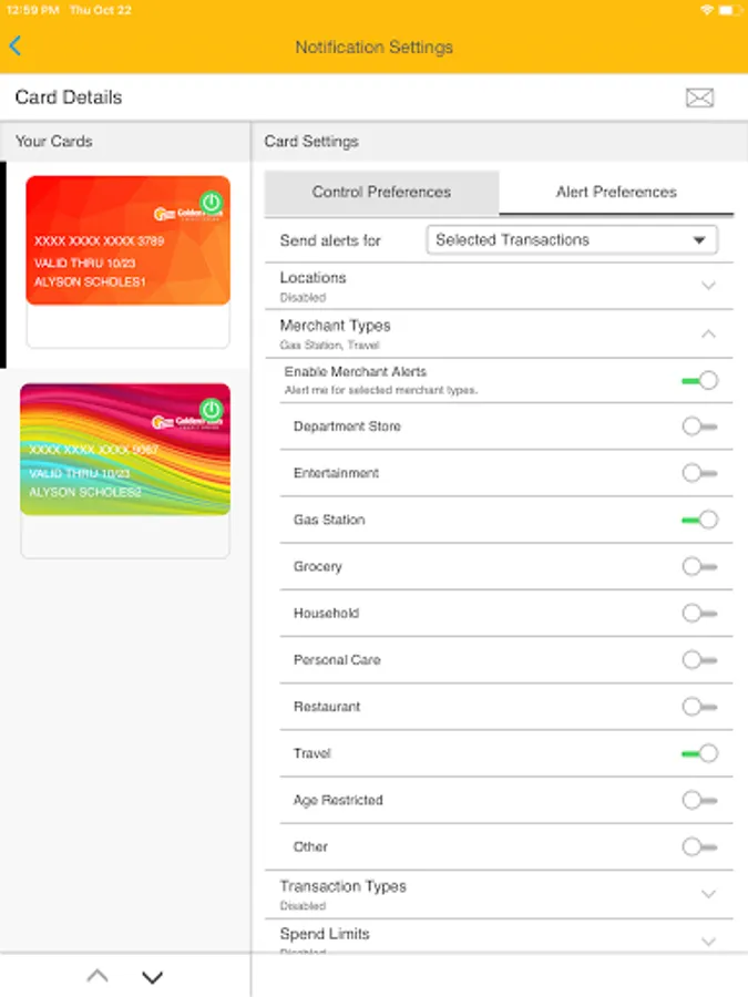 • Set alerts and controls on your Golden Plains Credit Union cards.