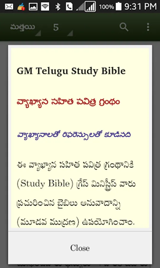 ఈ వ్యాఖ్యాన సహిత పవిత్ర గ్రంథానికి (Study Bible) గ్రేస్ మినిస్ట్రీస్ వారు ప్రచురించిన బైబిలు అనువాదాన్ని (మూడవ ముద్రణ) ఉపయోగించాం. ప్రస్తుతం అందుబాటులో ఉన్న తెలుగు బైబిల్ అనువాదాలన్నిటిలోకీ ఇది మూలానికి దగ్గరగా ఉన్నదీ, సరియైనదీ. అంతేగాక చదవడానికి అన్నివిధాలా అనుకూలంగా ఉండే సులభశైలిలో ఉంది. వ్యాఖ్యానాలు చేర్చేందుకు అనువైనది.