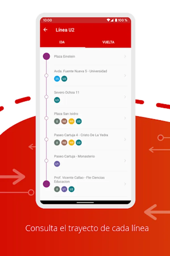 Application to check how much is left to pass all of a particular bus stop Granada transport network.