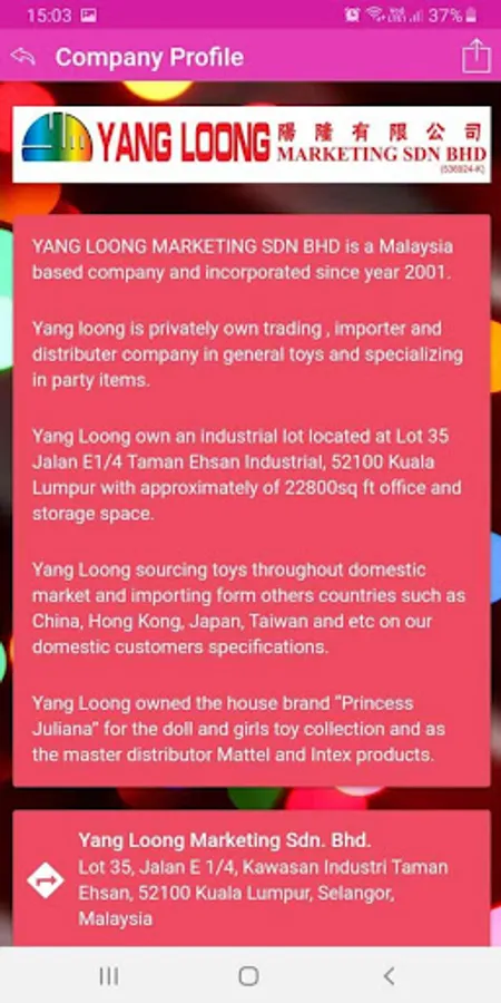 Yang loong is privately own trading , importer and distributer company in general toys and specializing in party items.