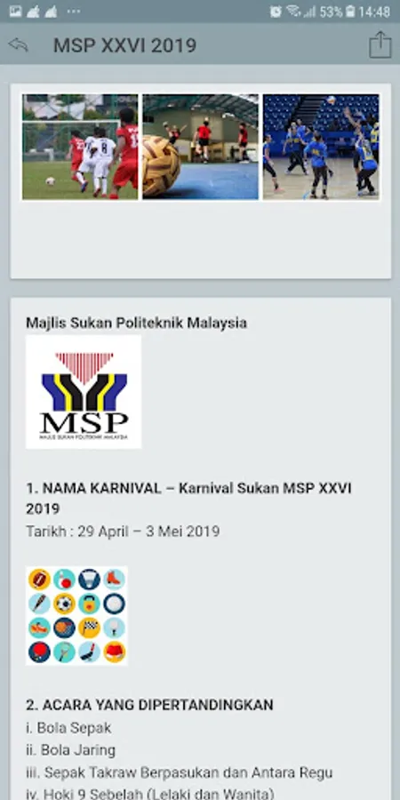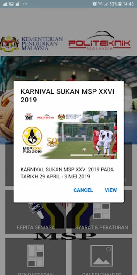 Majlis Sukan Politeknik Malaysia or MSP was established in 1999. MSP main purpose is to plan, coordinate and organize sporting events for the polytechnics. MSP also plans seminars and various sports courses to help the polytechnic students and staff to develop their skills, knowledge and expertise in various sporting areas. The council also acts as a resource centre to assist the polytechnics in various matters pertaining sports towards achieving excellence in sports.