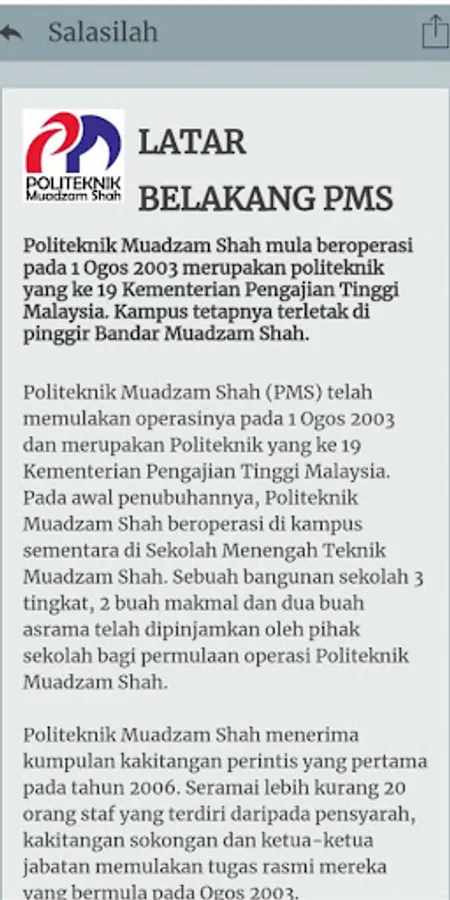 sebuah pusat kecemerlangan ilmu dan kemahiran yang terunggul di negara ini.