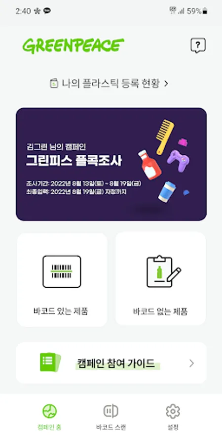 Greenpeace, an international environmental organization, has developed a citizen-participating plastic survey app to urge companies to reduce plastic use and strengthen transparency. Since 2020, Greenpeace has been conducting activities to investigate plastic usage by direct participation of citizens every year. Celebrating its 3rd year this year, the 'Together #Pick Up Plastic Cocks (Pick Up Plastic Cocks)' is conducting a more objective and broader survey by allowing plastic consumption to be measured anytime, anywhere. We also analyze this data to determine which companies are generating the most plastic waste and run campaigns.