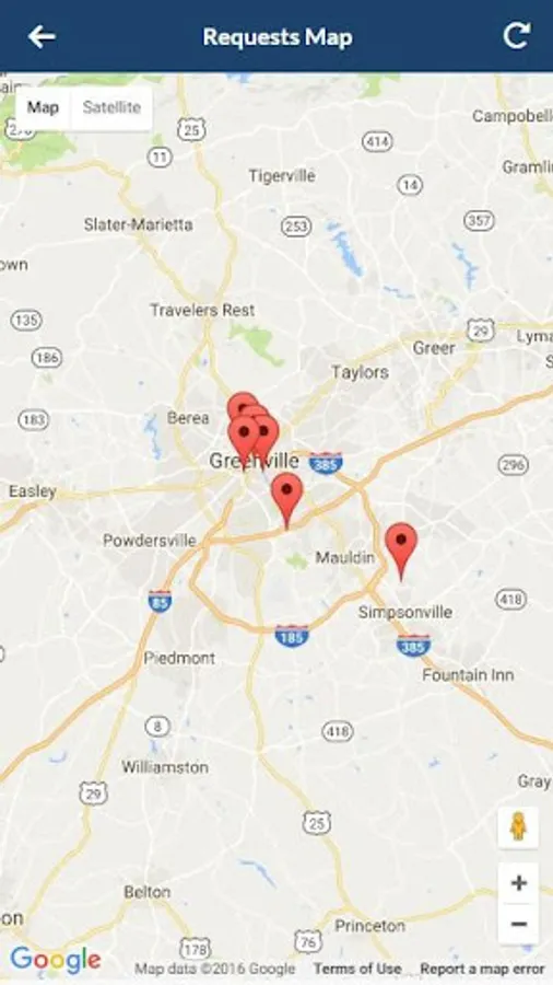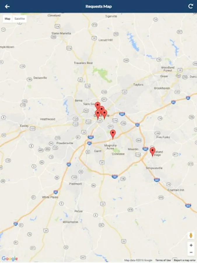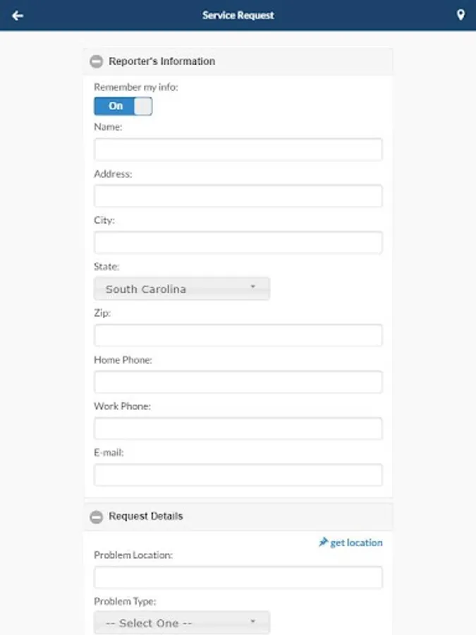 The County of Greenville, SC offers a 311 application to provide an easy way for citizens using an Android device to submit service requests immediately to the County. The County of Greenville Android app allows submission of service requests from your device as long as you have an Internet connection. Note that to submit the request, the county web server must be accessible from your device.