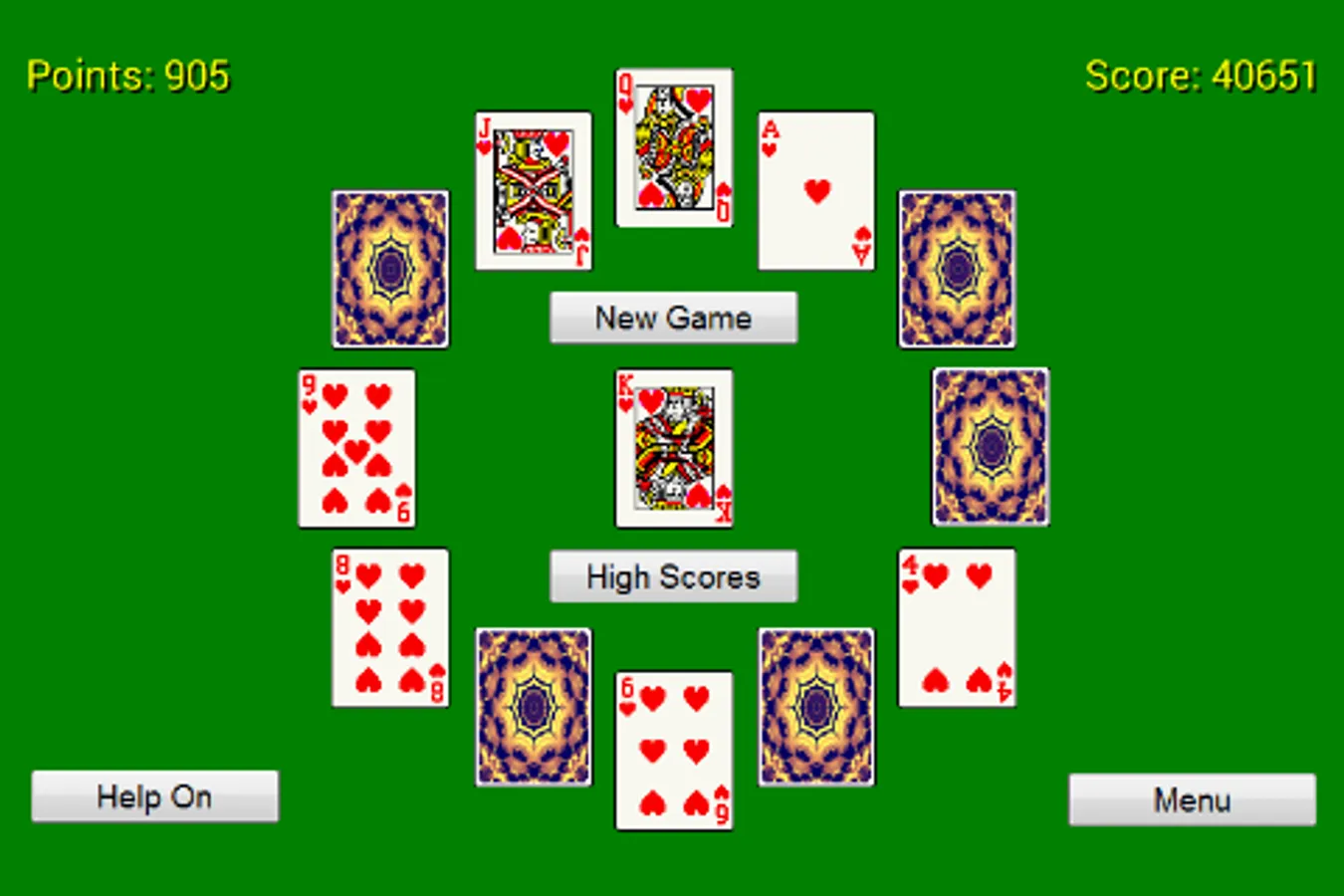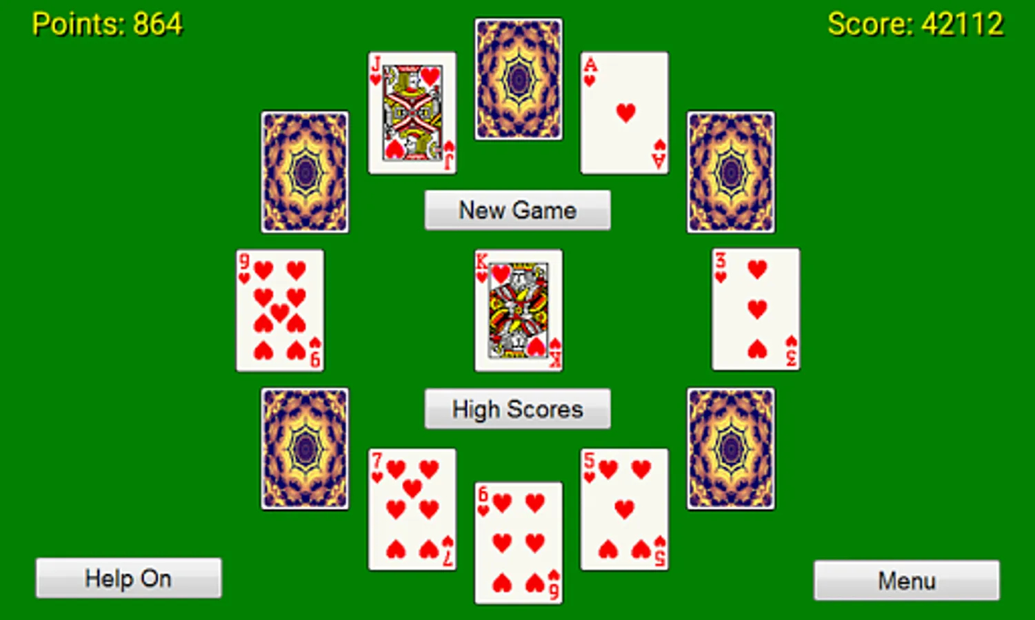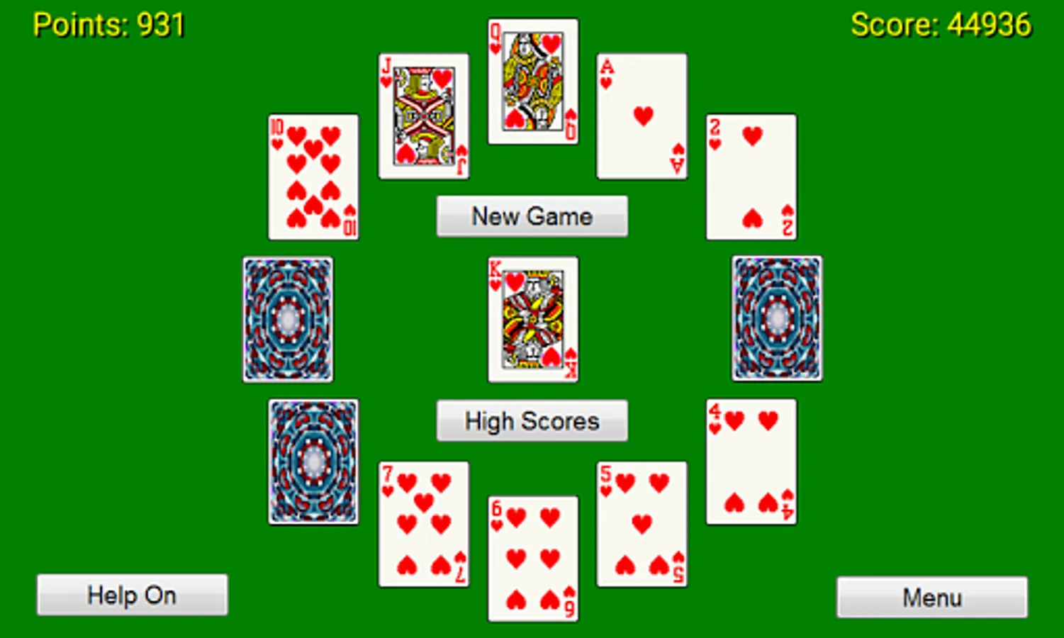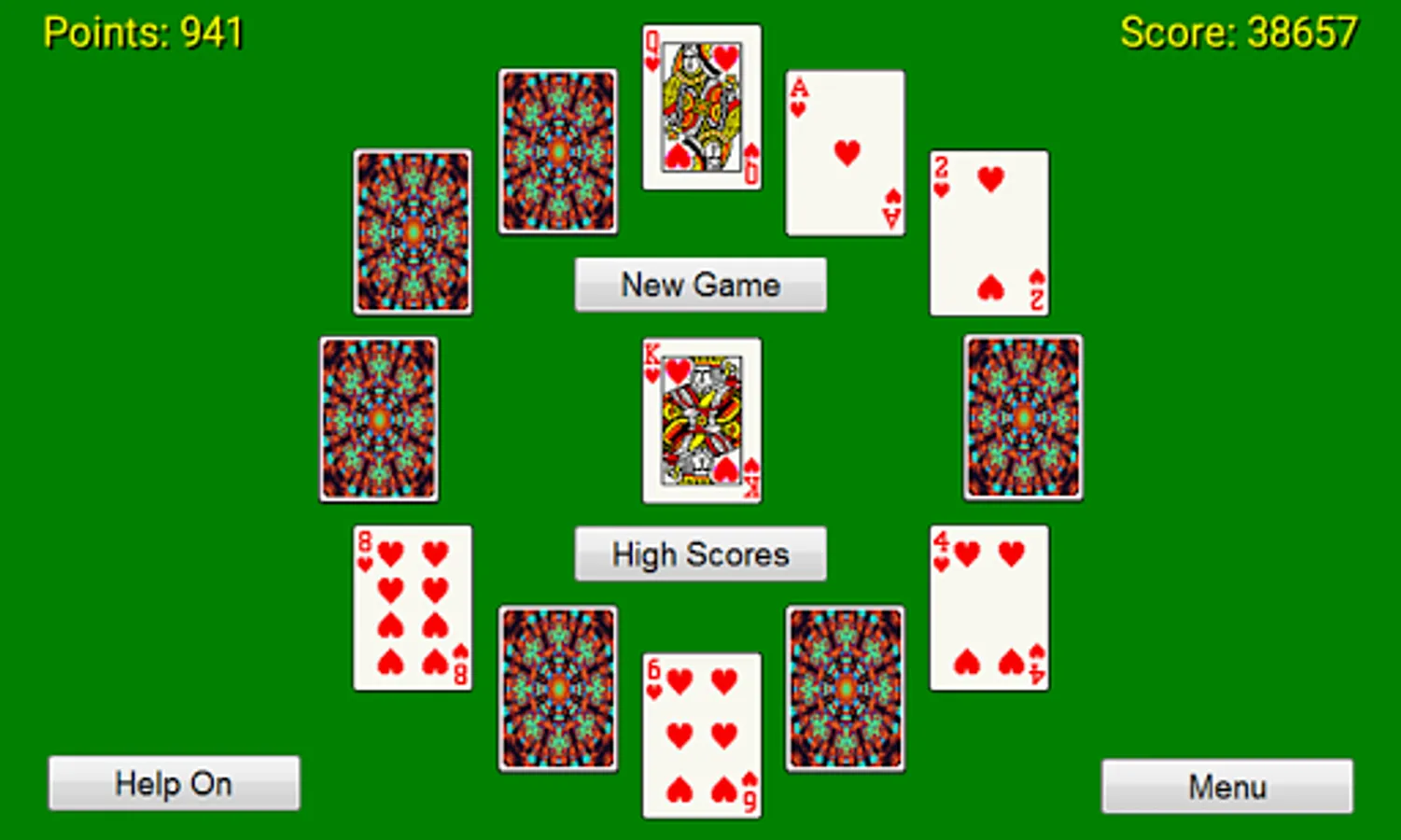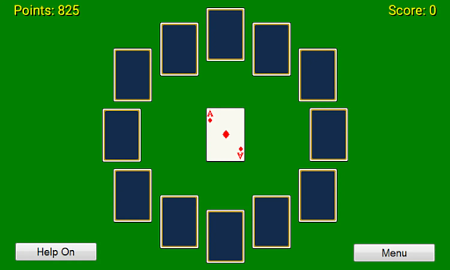 Simple 1 player card game. Patience played out in a clock face pattern.