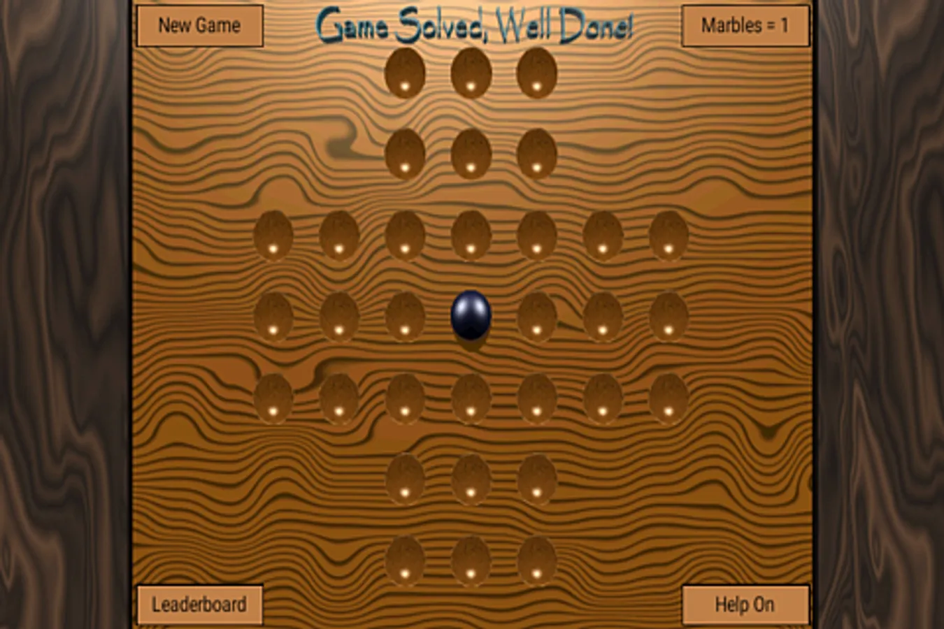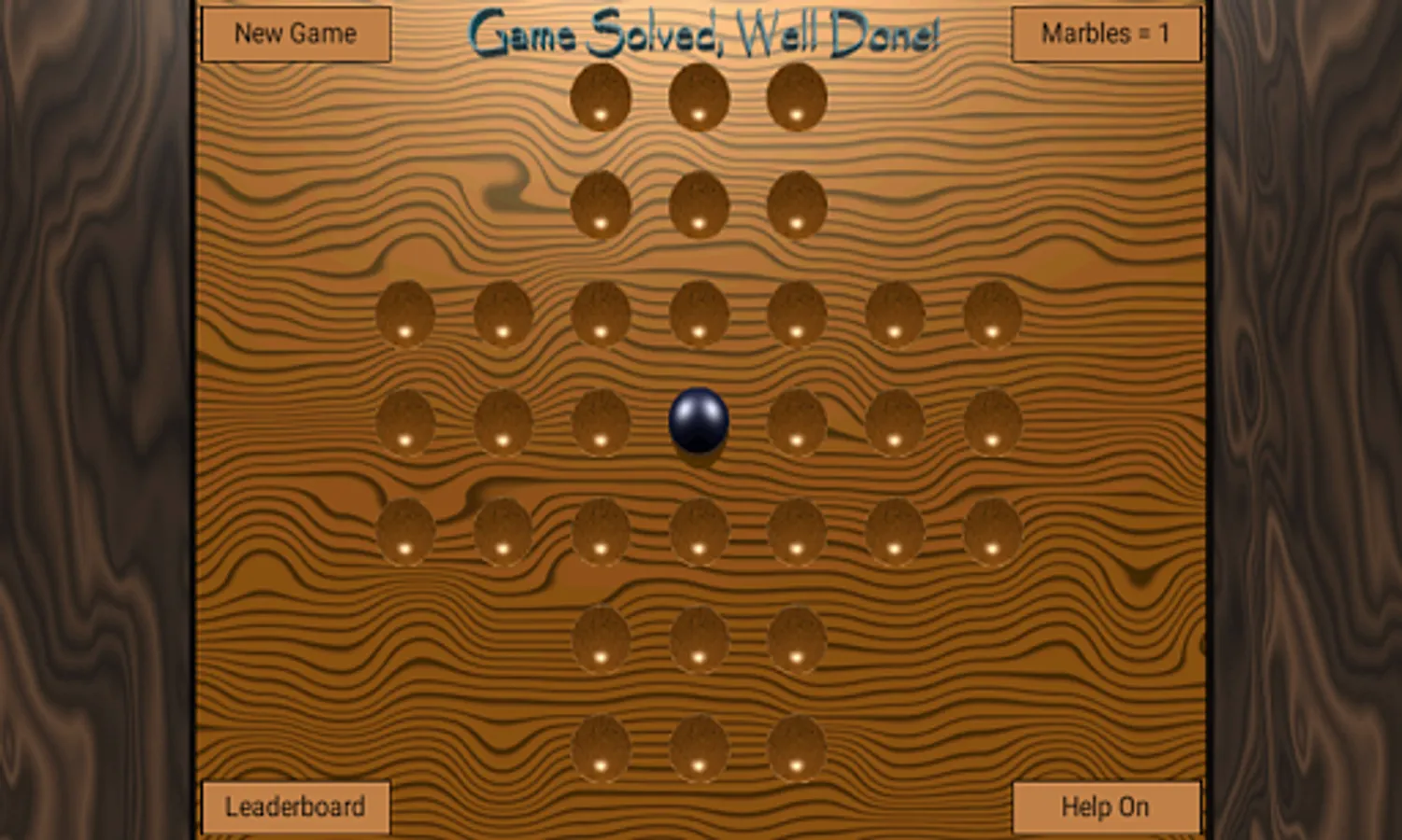 A real brain teaser where you have to move strategically to leave only one marble.
