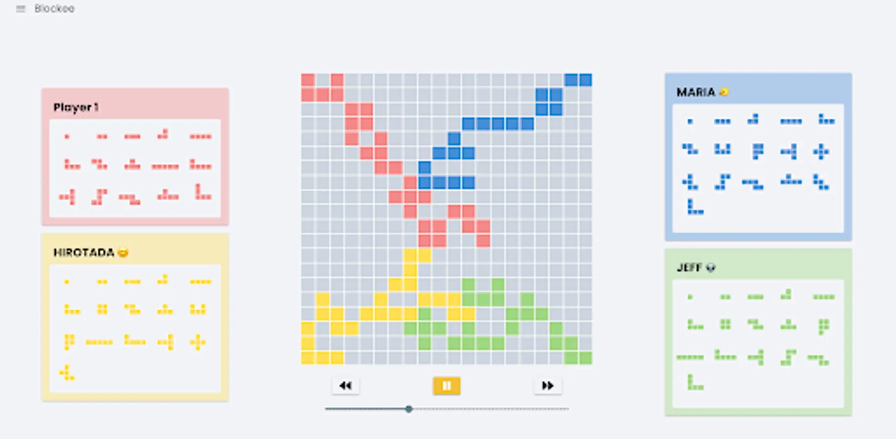 To avoid confusion, this game has no association with Blokus. The game is designed by referring to the rules of Blokus, as well as our own ideas.
