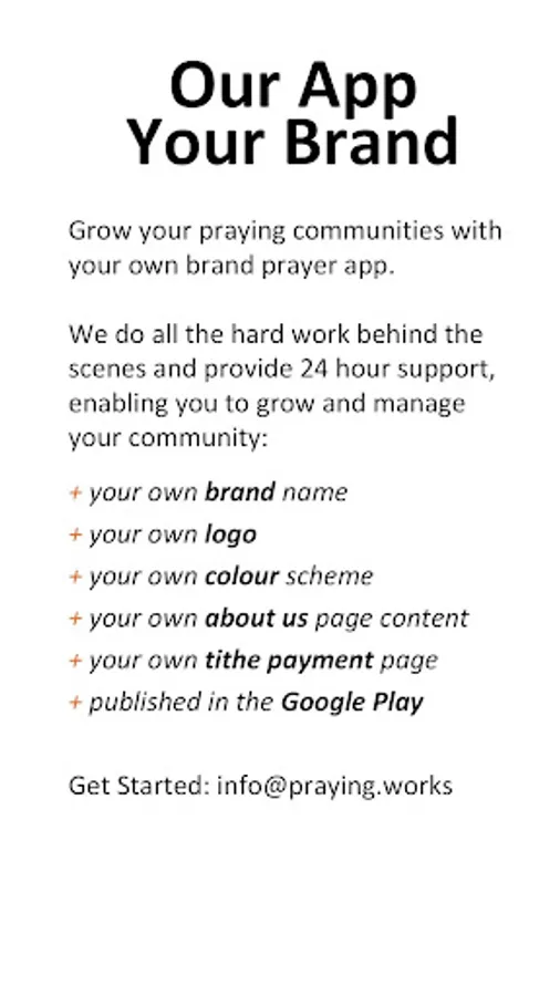 GroupCall can be rebranded and customised to meet specific needs. Contact the Praying.Works team at info@praying.works for any specific development query.