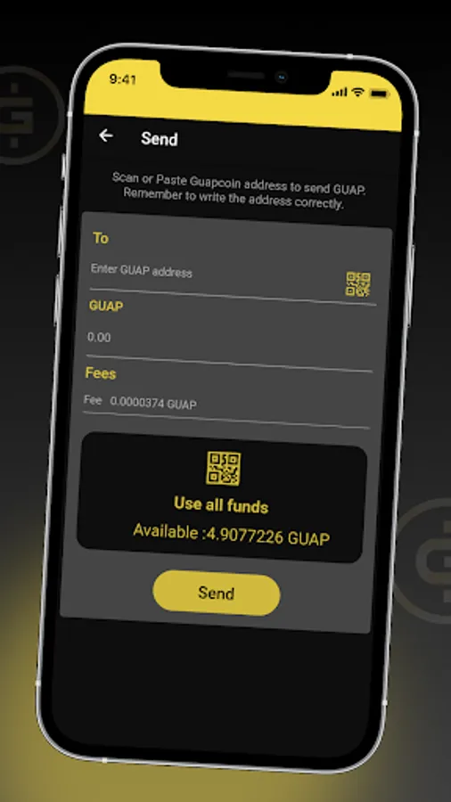 Send and receive Guap as well as Bitcoin easily.