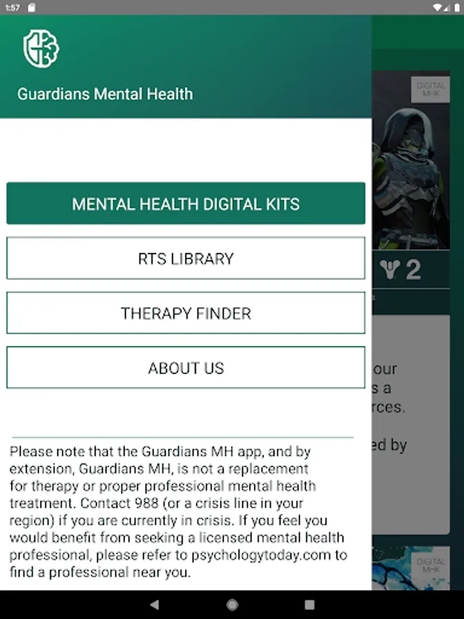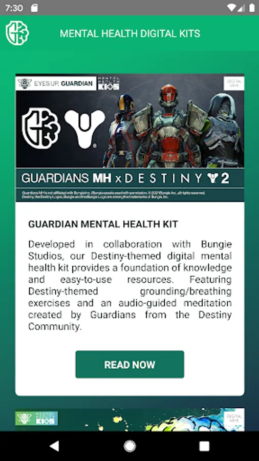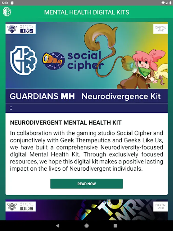 Access to every Digital Mental Health Kit is now accessible in one place directly from the Guardians MH app. Each digital kit is filled with focused resources like grounding and breathing techniques, self-care tips, gamer workout programs and much more.