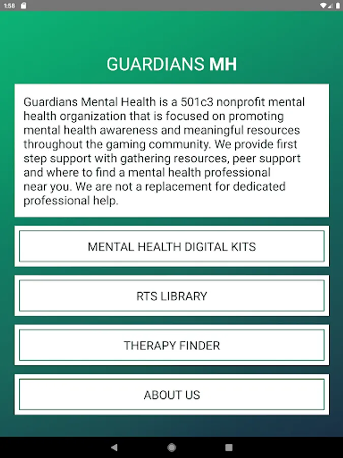 Providing access to our entire RTS Library of mental health and crisis resources, vetted by clinicians to be meaningful and evidence-based resources that has led the way, resources are accessible on Discord, Twitch, any web browser and now through the Guardians MH app.