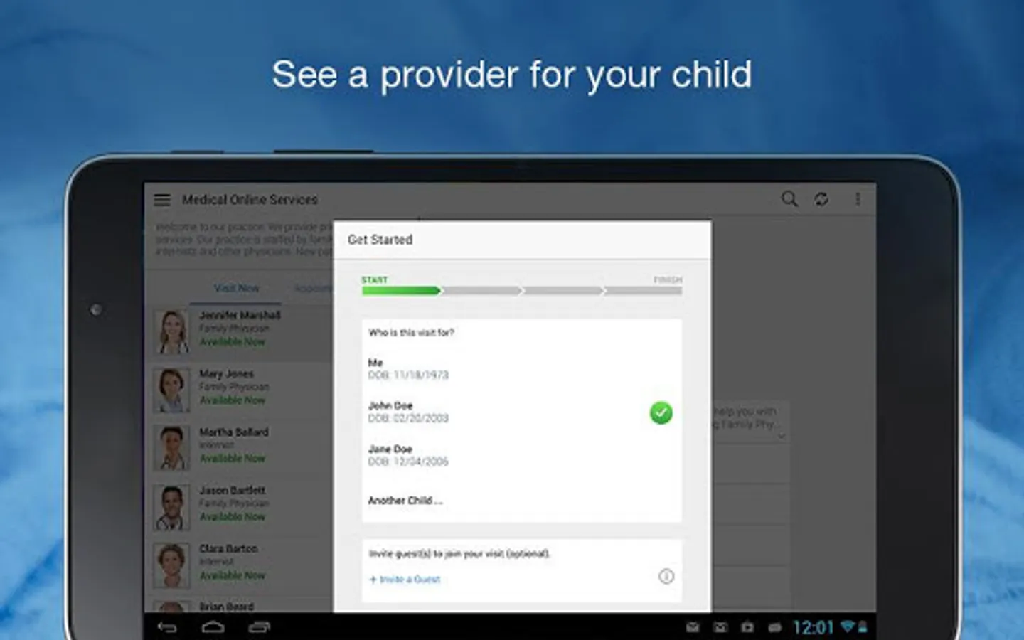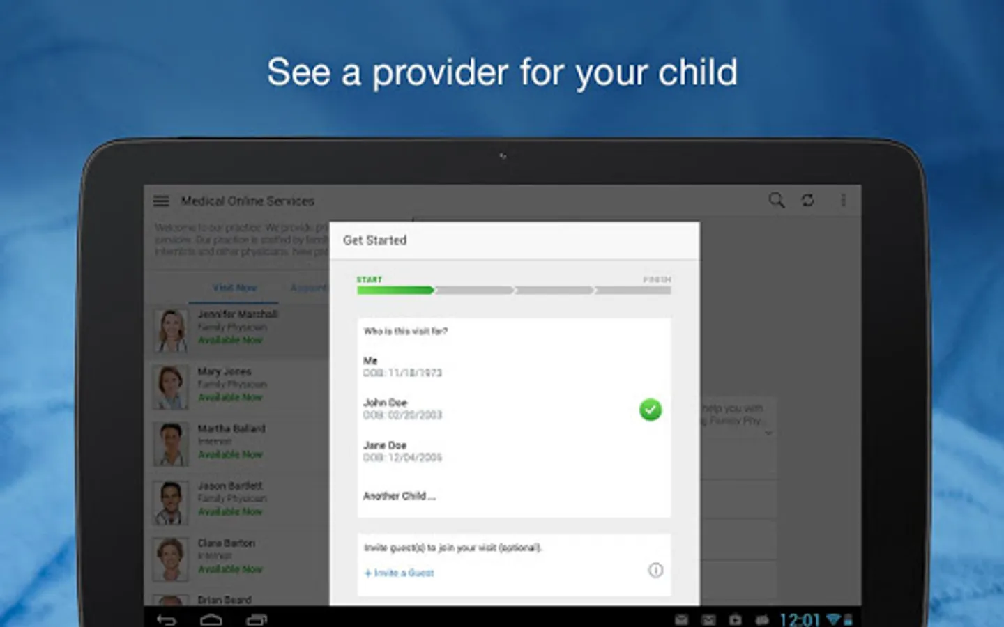 When you or a family member is sick, Guthrie Now provides a convenient alternative to a traditional doctor or urgent care visit. Simply visit with a licensed provider from home using your smartphone or tablet. Get a diagnosis and treatment, no waiting rooms or drive to the office.