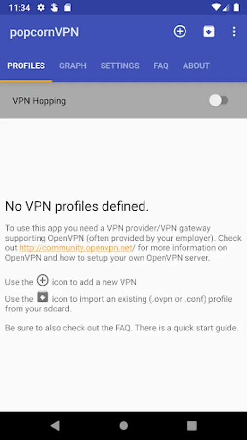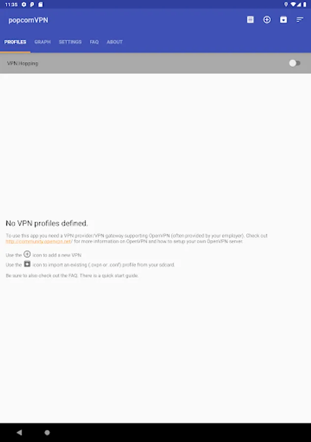 Just import your profile(s) and tap on one to connect. You can enable hopping with the switch on top, and you can set the interval for hopping in the settings tab.