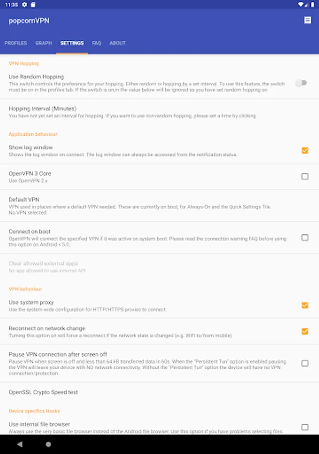 popcornVPN is a reliable and powerful VPN client based on Arne Schwabe’s ics-openvpn or OpenVPN for Android. It has a new feature: VPN hopping. VPN hopping is the process of switching between VPN profiles on the fly, as to conceal the telltale sign of VPN use: data constantly being sent to only one server for a long period of time. VPN hopping makes it harder for anybody to see if you are using a VPN.