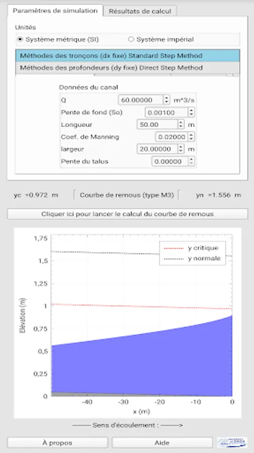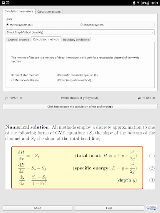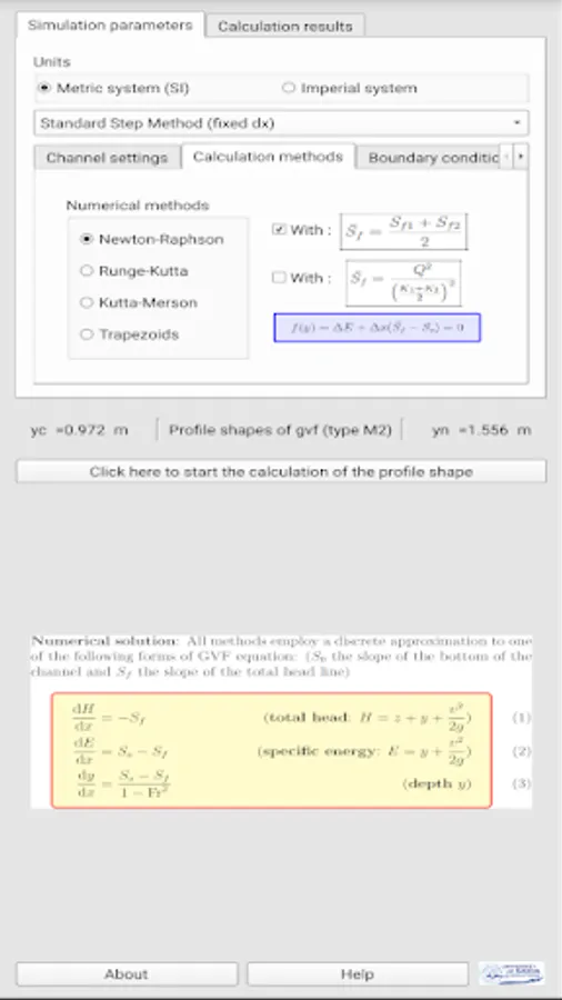 Application used to compute water surface profiles in prismatic channel for gradually varied flow.