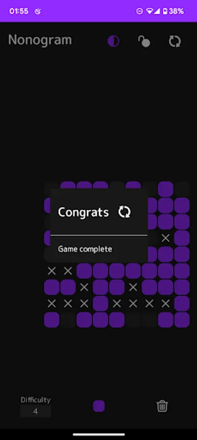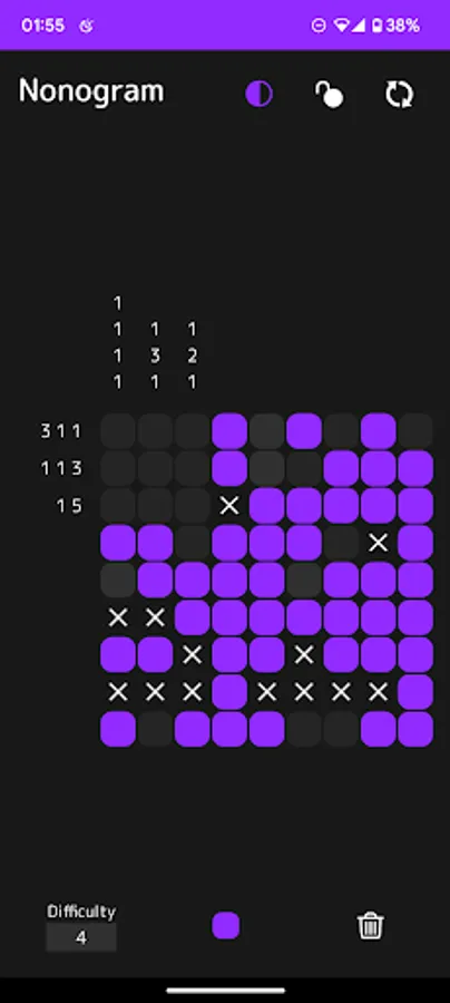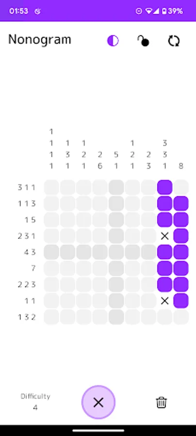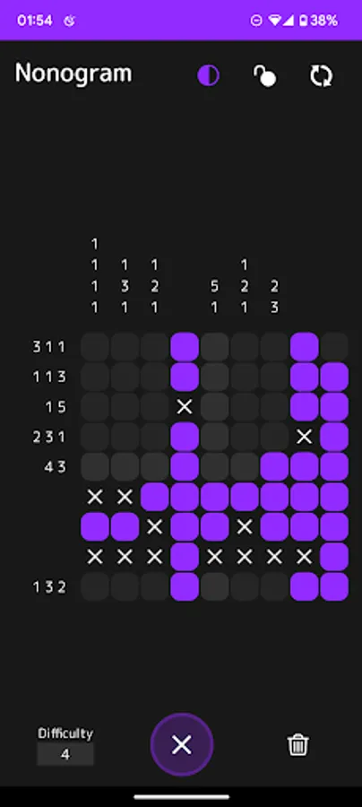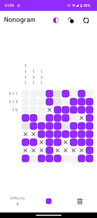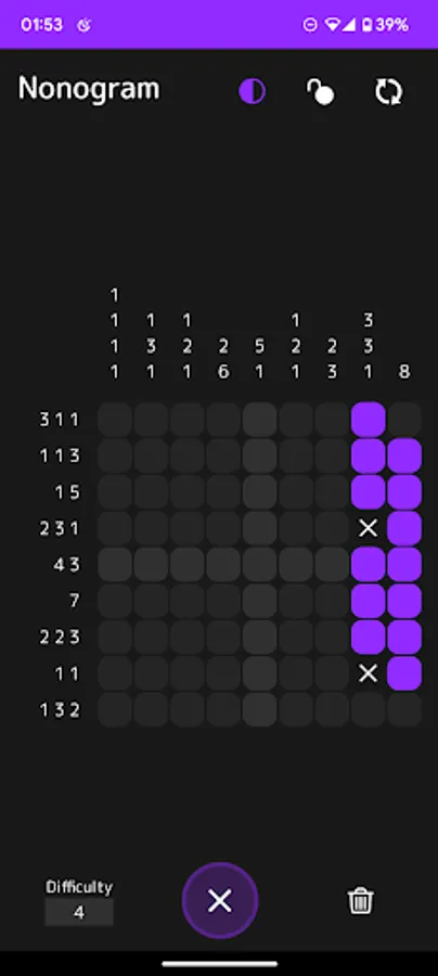 Play unlimited randomly generated nonograms, graphical crosswords where you colour in a grid according to the numbers on the rows and columns.