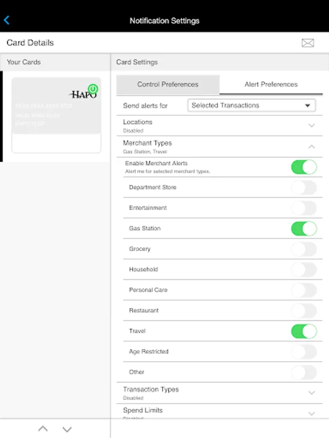 • Set controls on your HAPO Visa, you can block international transactions etc.
