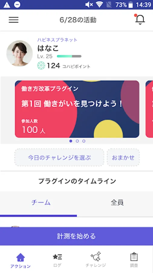 Equipped with a new technology that measures your body rhythm using the smartphone's acceleration sensor and calculates the "happiness relationship" of you and your team.