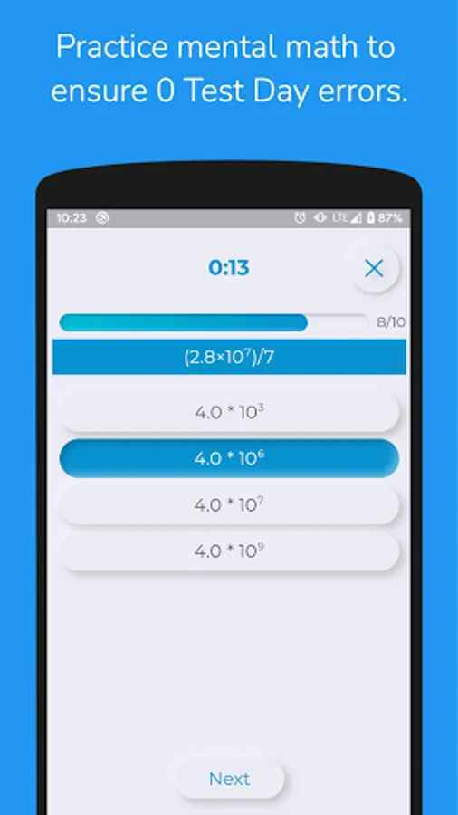 1) Math Practice: Unlimited pure math practice question, so you can practice your mental math without a calculator. These math skills are the same ones you need on the real MCAT: Addition/Subtraction, Multiplication/Division, Exponents, Square Roots, Logs, Scientific Notation, and a touch of Trigonometry.