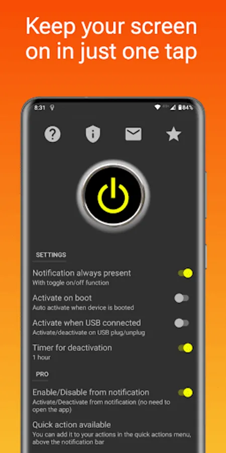 • Quick action available- You can add it to your actions in the quick actions menu, above the notification bar.