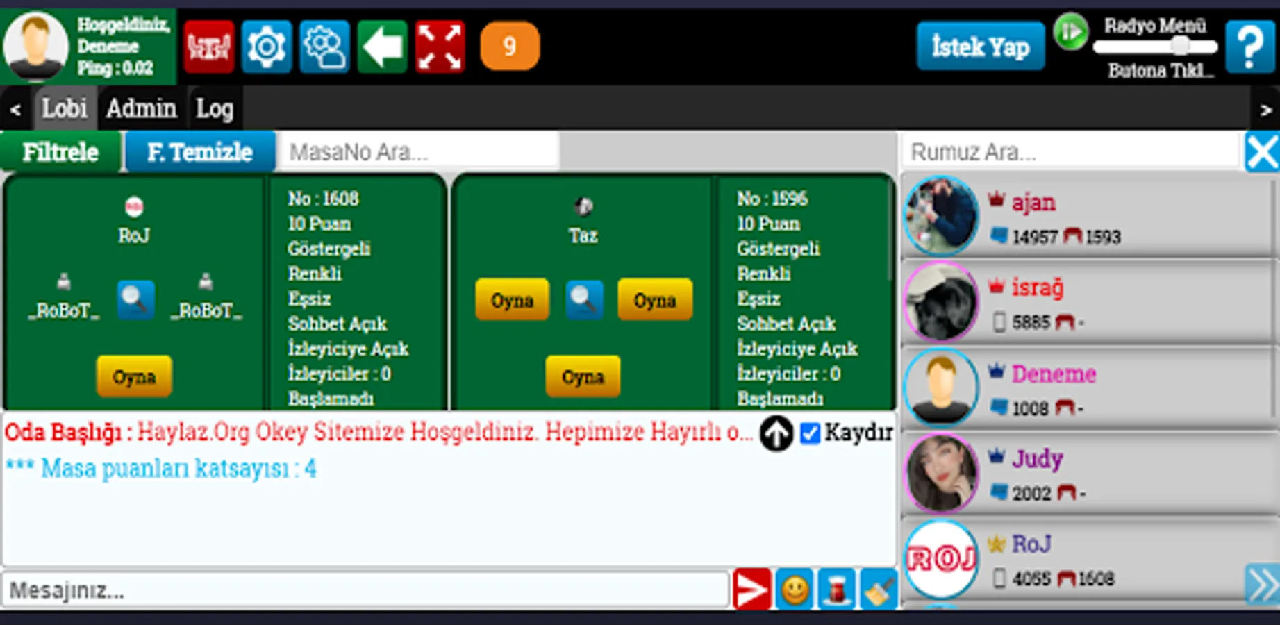 Creating a membership on our Haylaz Okey Plus site is completely free. To create a membership, you can connect to our game by using the sign up section or Facebook Login section. While playing Okey, you can listen to the radio, make song requests to your loved ones or yourself.