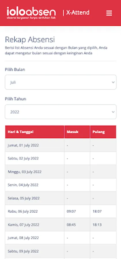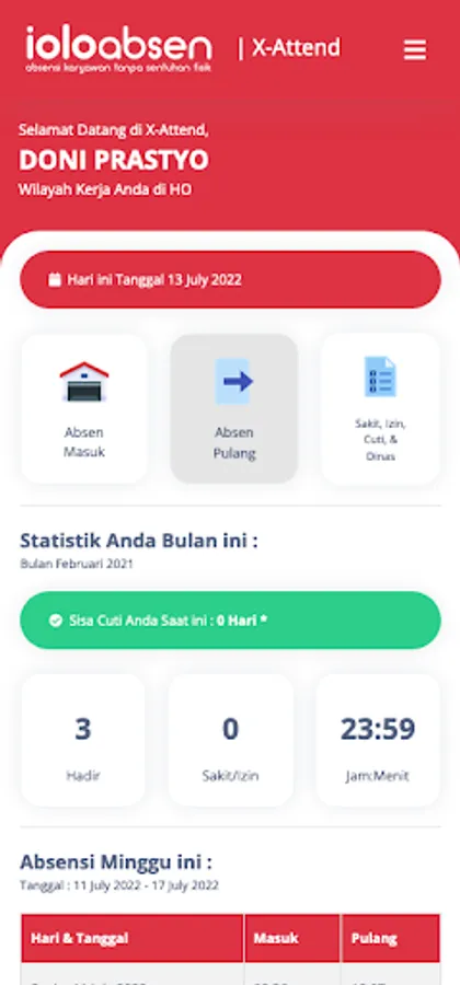 The HDN Attendance Application is an application that makes it easy for employees to take attendance. Attendance uses maps to find out where we are absent, in addition to applying for permission, illness, external service, and leave can be done through this application