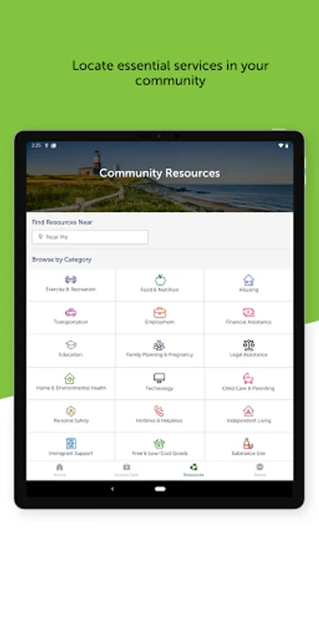 • Find essential services nearby—food, housing, education, employment, financial and legal assistance, and more.