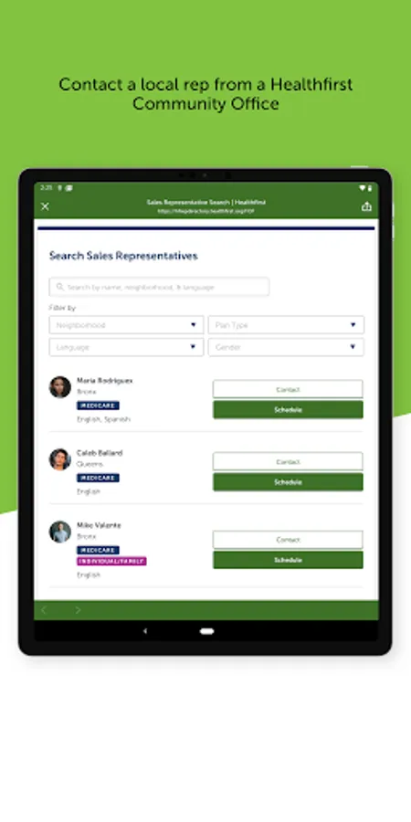• Use our Healthfirst Virtual Community Office to search for a local sales rep by borough, office location, language, and gender.