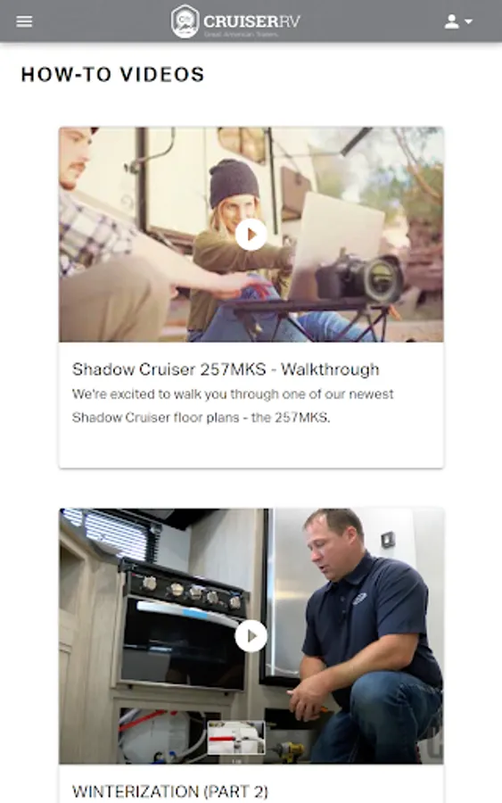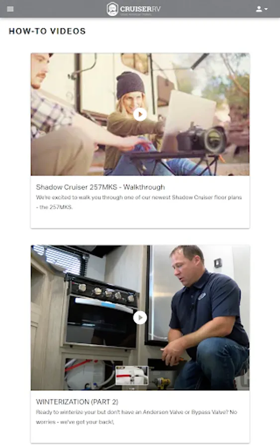 2) Find useful how to videos, resources, and dealers as well as checklist, articles and podcasts. (MyRV, Tips & Maintenance, RV Service, CRV, My Cruiser, MyCruiser, MyCruiserRV, CruiserRV, Cruiser RV)