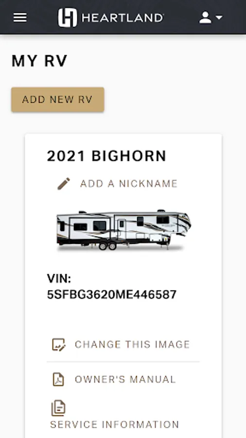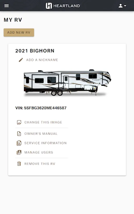 o Add your RV model, make and VIN. This will link to your warranty information and status, sales orders, your claims as well as any recalls pertaining to your RV. You can also manage users by inviting others to see your unit information.