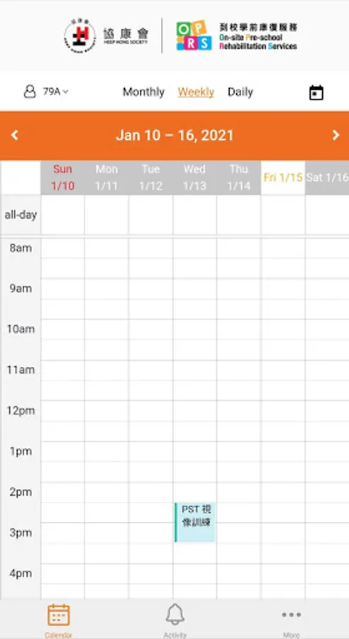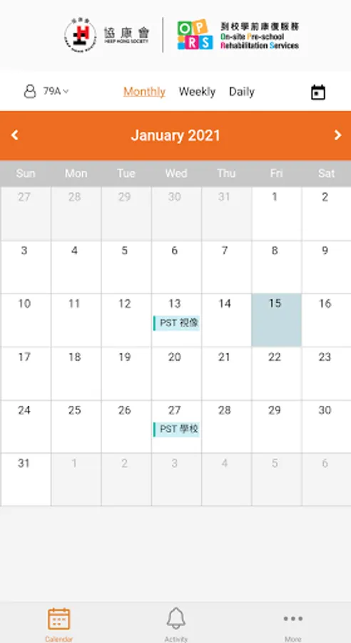 Heep Hong Society On-site Pre-school Rehabilitation Services App displays the monthly training schedule in a calendar format, allowing parents to check the latest training dates and times anywhere and anytime. With a user-friendly interface, the app also provides on-day training reminders for parents.