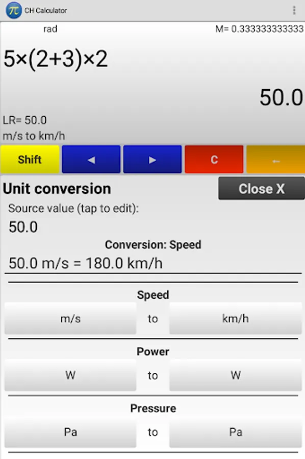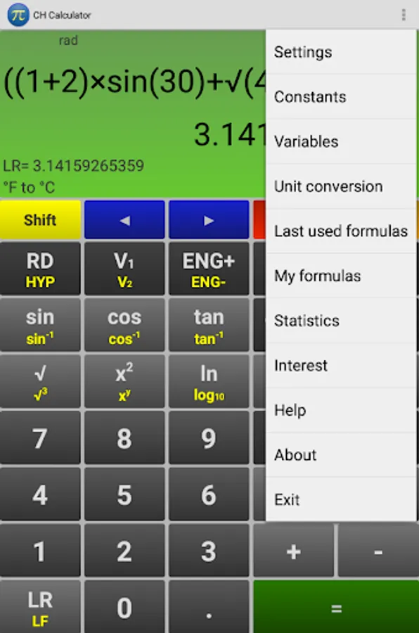 The scientific calculator CHCalculator has a clear user interface. He has mastered the basic arithmetic, hexadecimal calculations, trigonometric functions and more.