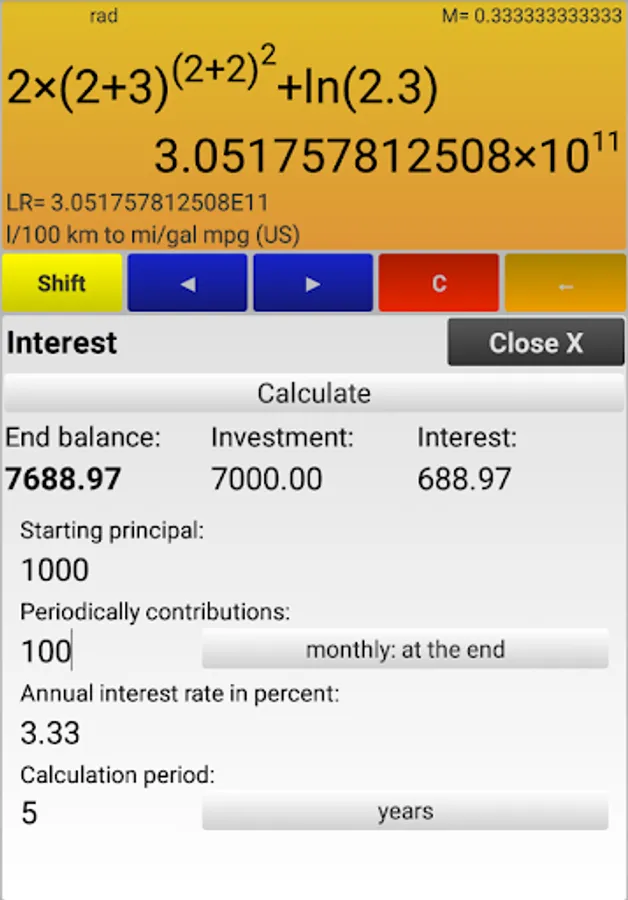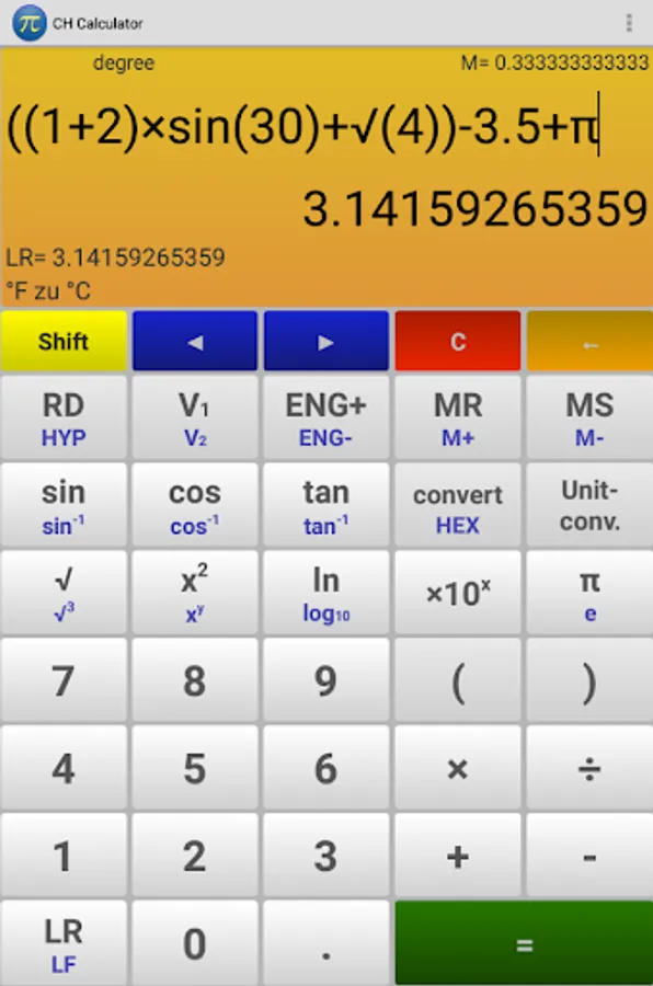 The scientific calculator has a clear user interface. He has mastered the basic arithmetic, hexadecimal calculations, trigonometric functions and more.