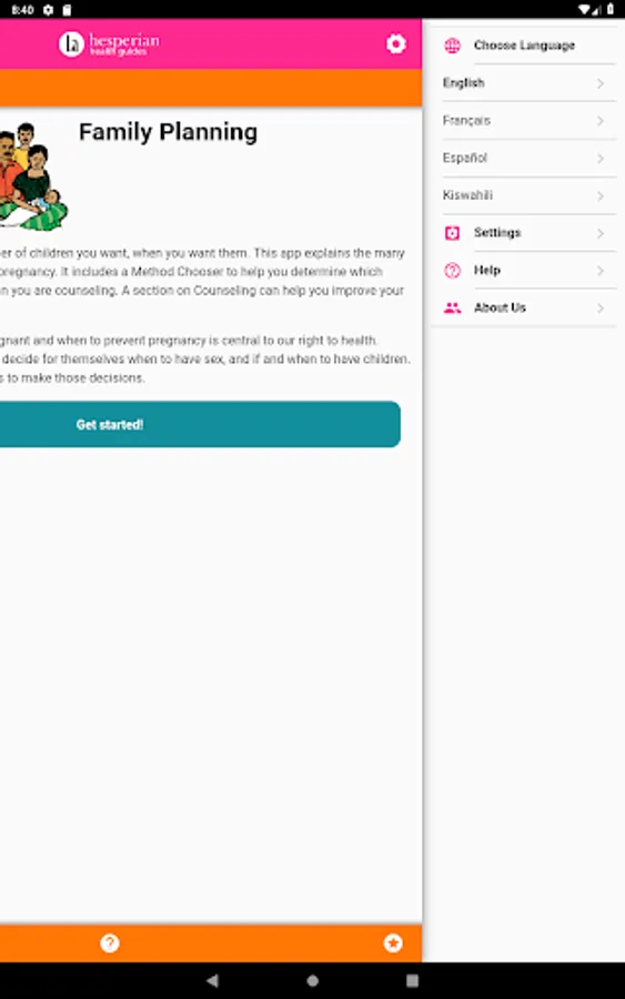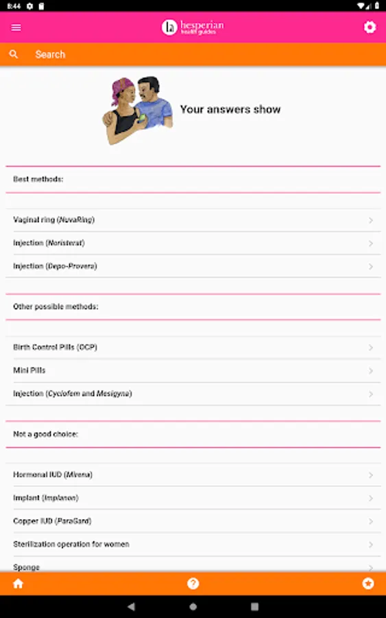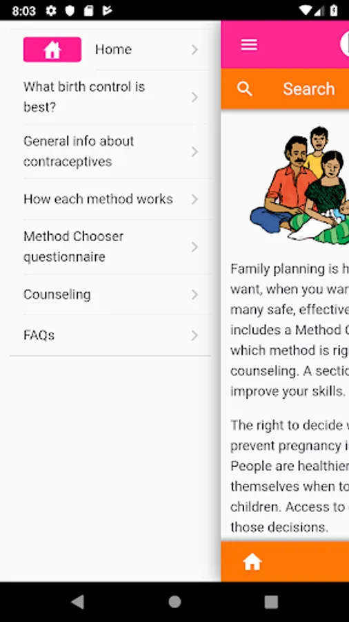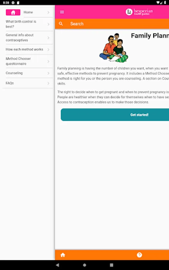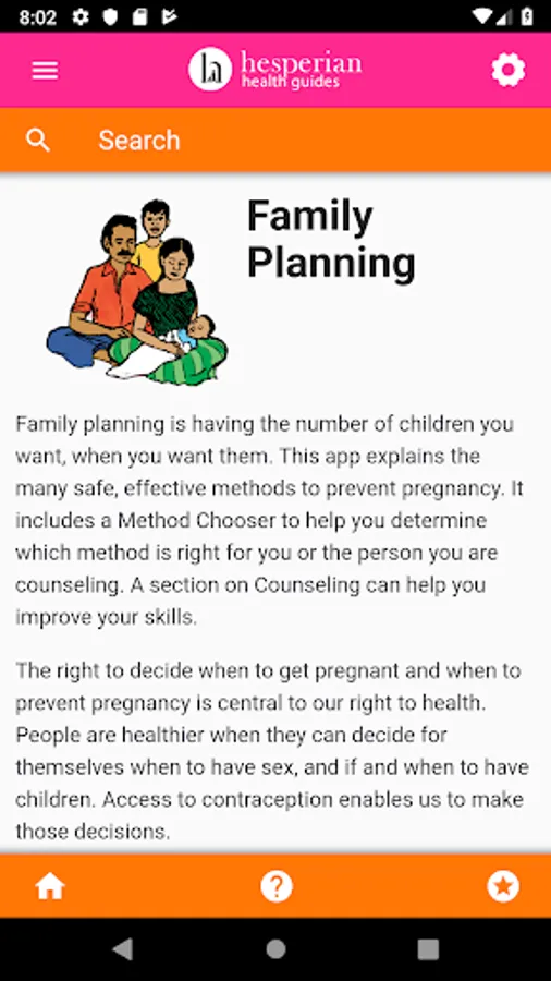 Hesperian’s Family Planning app is designed to support frontline health workers, community leaders, and health advocates to share unbiased information on birth control options. The app can help you counsel on reproductive health, a range of birth control methods, the benefits and disadvantages of each method, emergency contraception, and more. A built-in “Method Chooser” can help determine which methods best respond to individual preferences, circumstances and health history.
