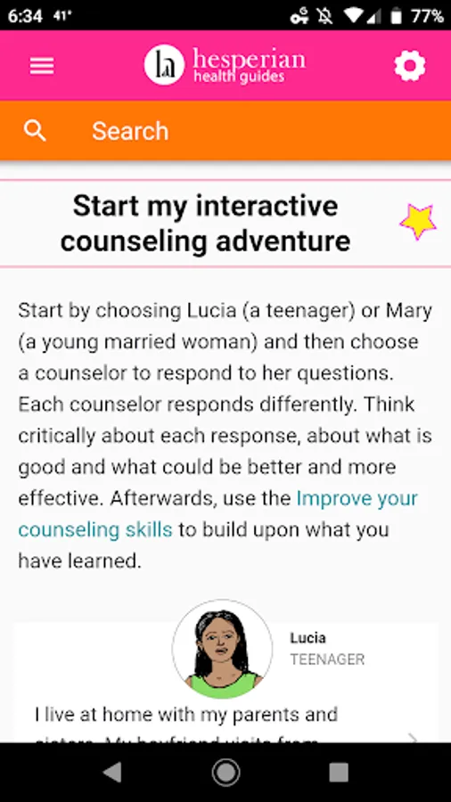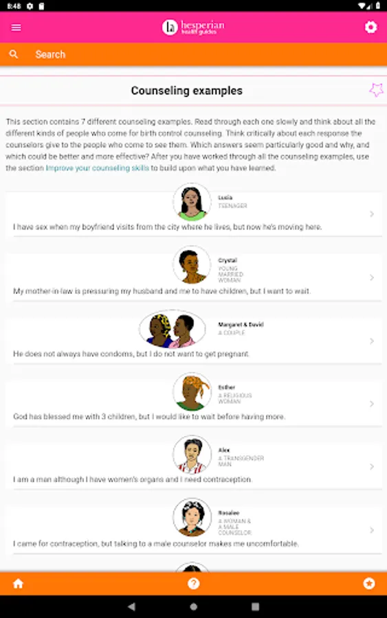 The app features an interactive section on Counseling to help improve counseling skills and ease of discussing sex-related questions while considering the varying needs of people seeking contraception.