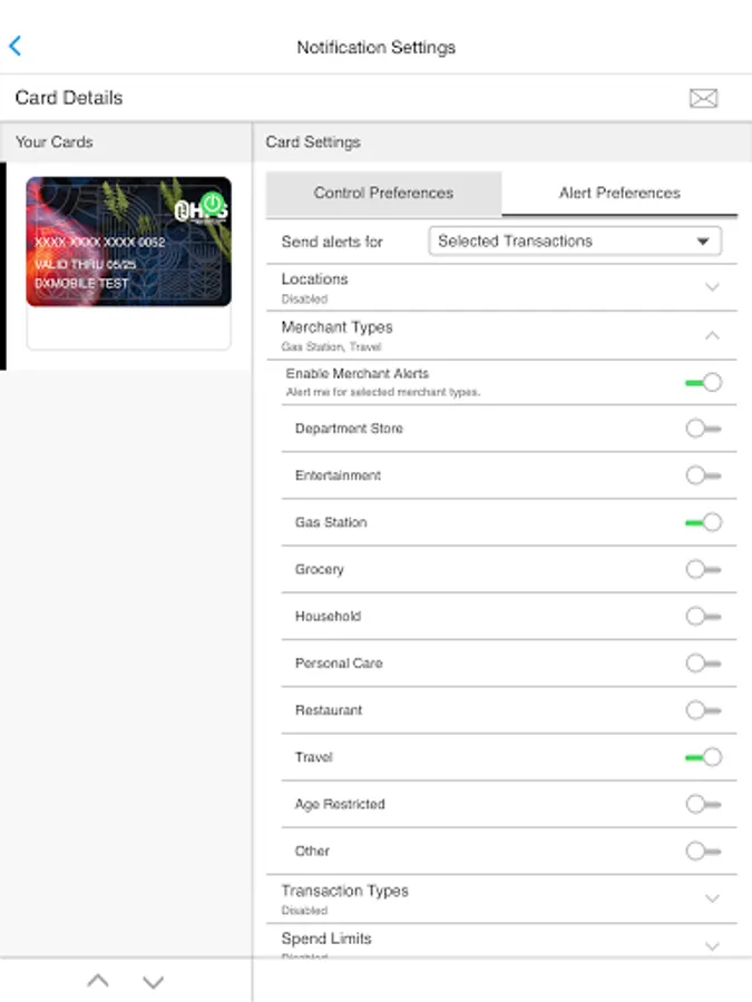 • Protect your cards by sending transaction alerts and enabling you to define when, where and how your cards are used.