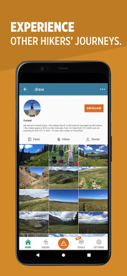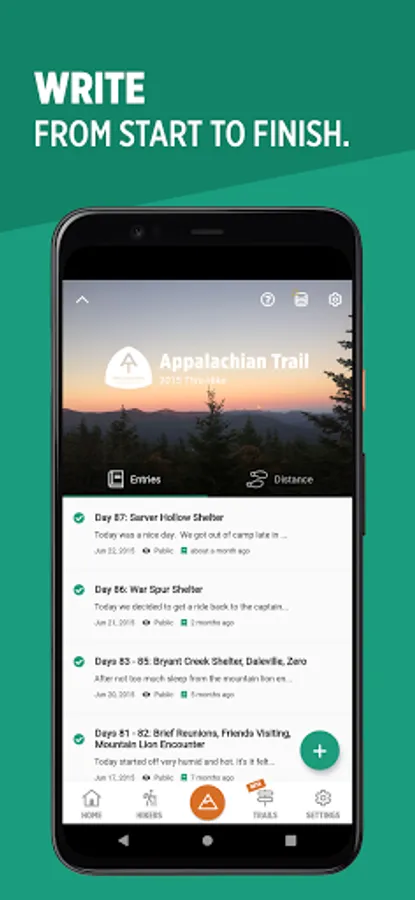 Planning a thru-hike or long distance backpacking trip you want to share with the world? The HikerFeed app helps complete your hike experience. With the HikerFeed app you can write daily journals in a simple yet intuitive editor, view your photos on a map, and track your daily distance and step count each day. No need for cell service. HikerFeed saves everything locally to your device and syncs up when you have service. Don't waste your time buying a domain and setting up a blog or website. With HikerFeed you can create a hike and start sharing your journey within minutes.