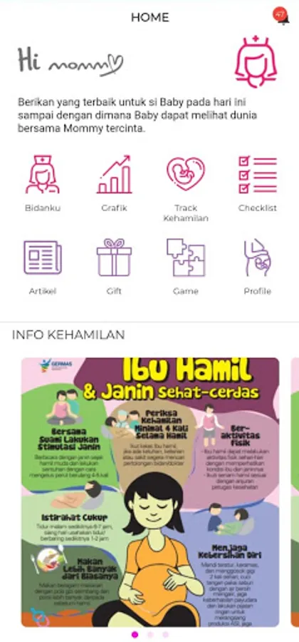 With this feature, Mommy can see the health development of Mommy and your child during pregnancy. Mommy can see a history of body weight, blood pressure, hemoglobin, and urine conditions, to make sure Mommy is in good health. For your little one, Mommy can also see a history of height, weight, and a list of immunizations that must be given along with the information. Make sure your little one grows up healthy, right, Mommy.