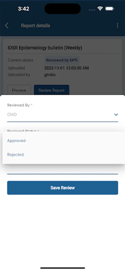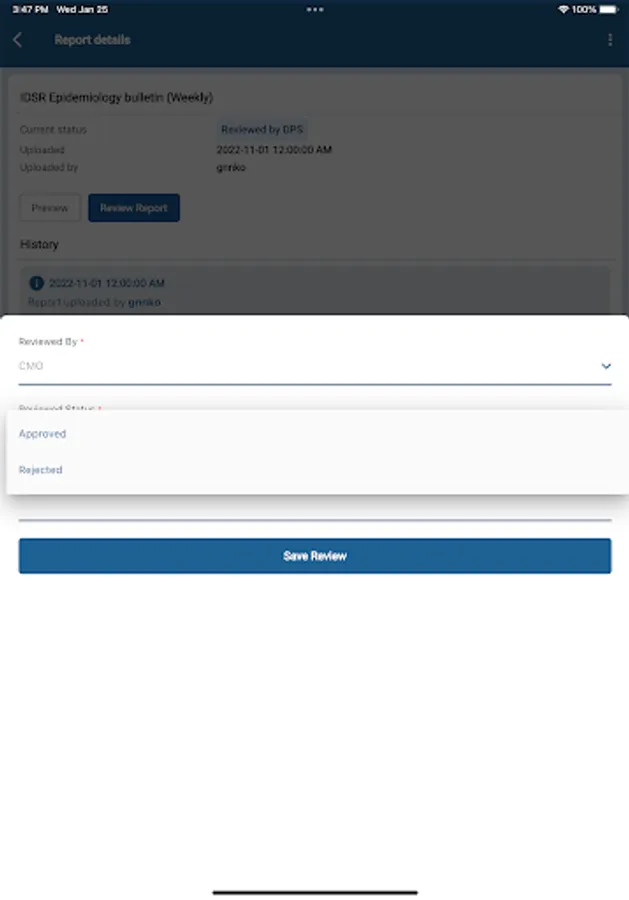 Custom app for the support approval process of uploaded reports for MoH Tanzania prior to being public for higher positions in the Ministry