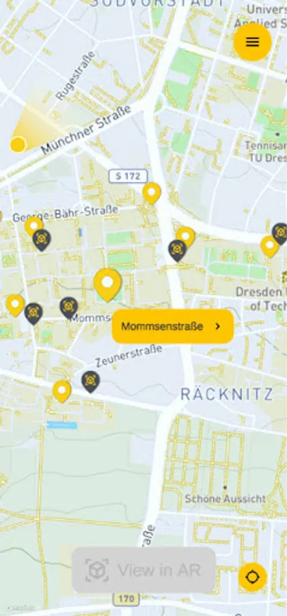 The app was developed by students, doing a complex lab project at the Chair of Computer Graphics and Visualization. Research and curating was done by the Stasi Records Archive Dresden. The University Archive Dresden contributed the historic photographs used in AR mode as well as additional background information.