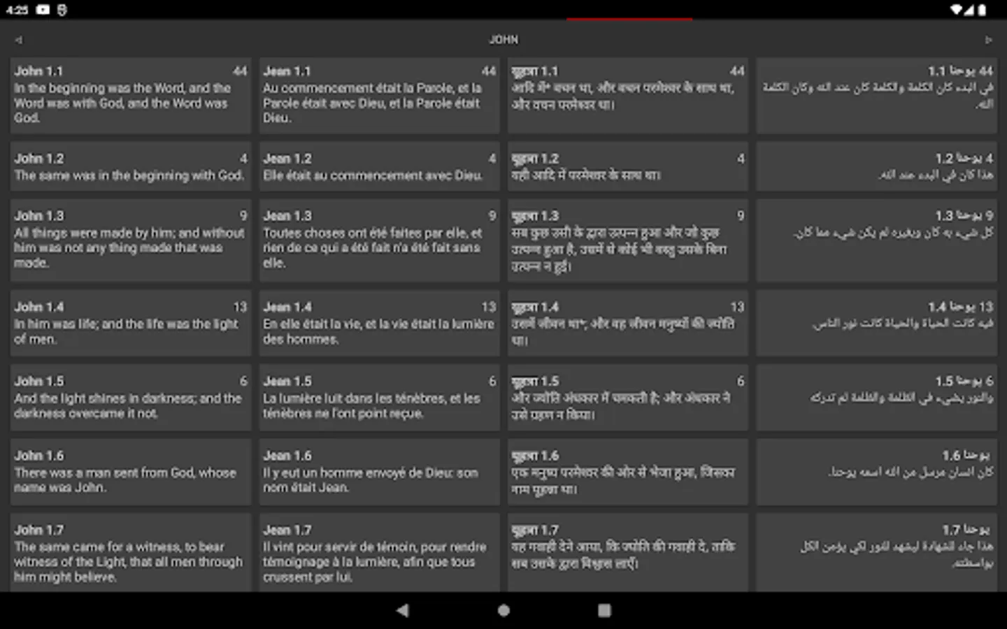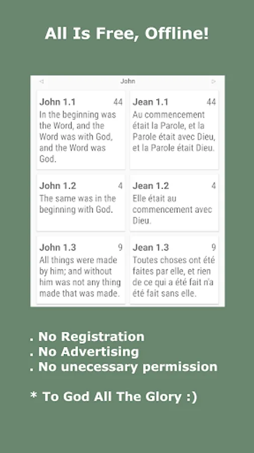 Bible multi languages, free, offline, no advertising, in English, Hindi, French, Italian, Spanish, Portuguese.