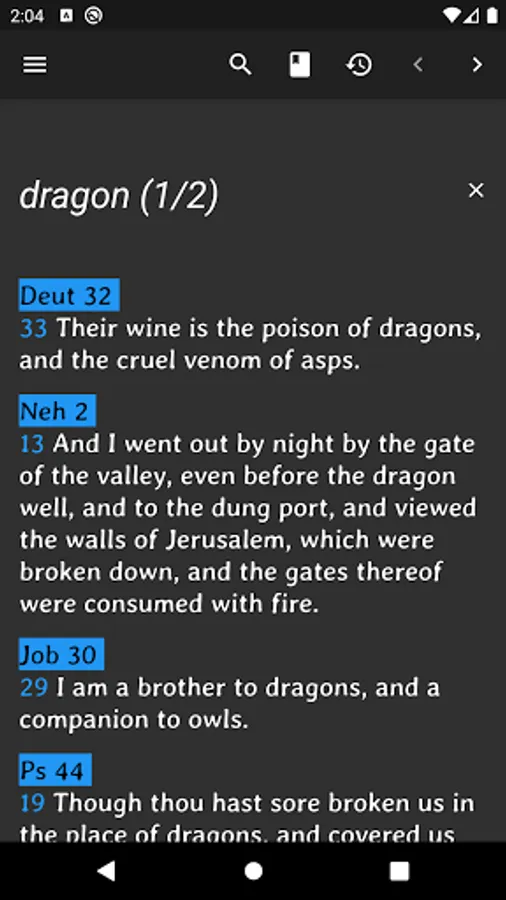 You can browse your search history (containing opened books, parables, cross references...) and let you navigate through in an infinite way.