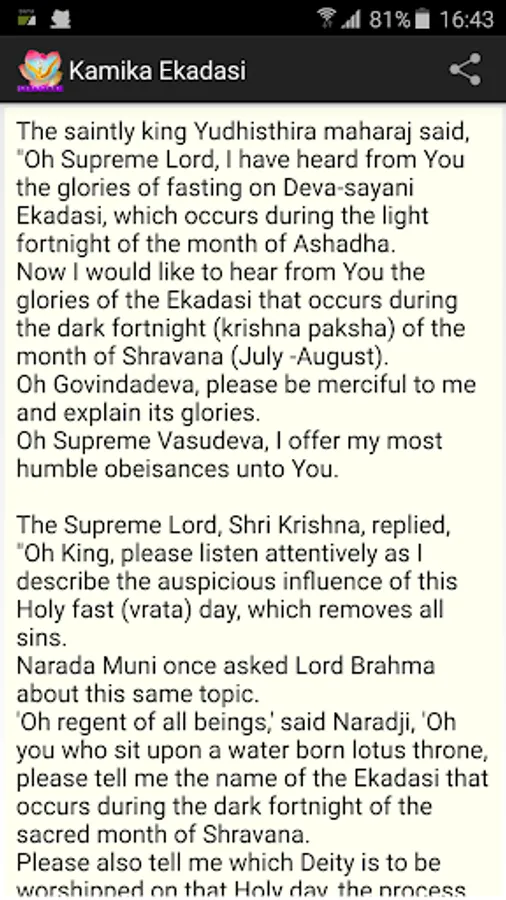 - the ability to share the description of Ekadashi, Festival, Tithi and other Texts