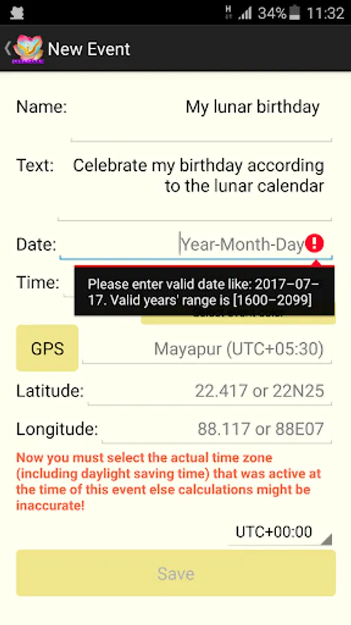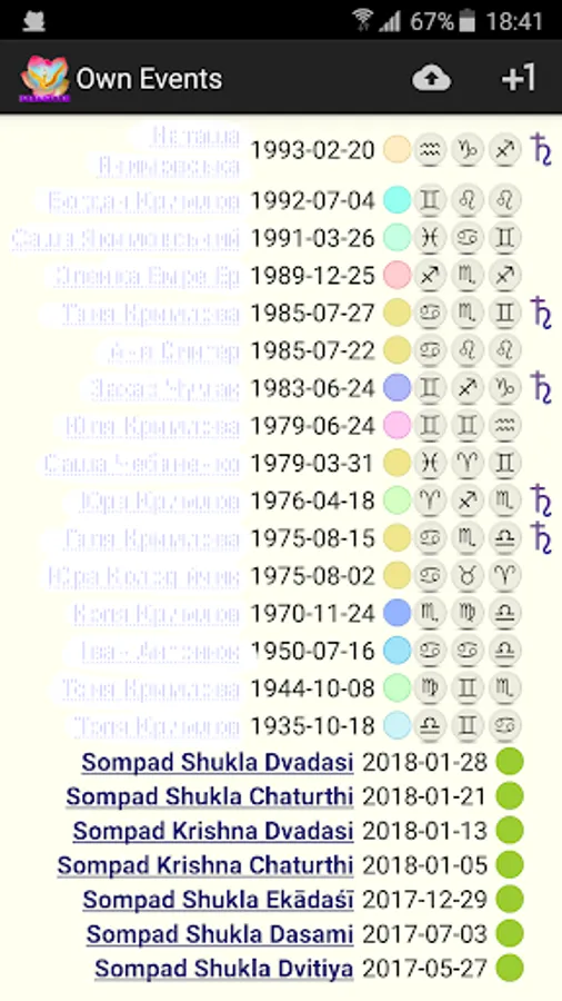 - calculation of Lagna, Janma and Surya Rashi for your own events