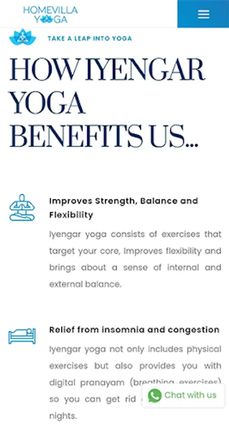 Homevilla Yoga has been conducting medical, prenatal, children, and general yoga classes to cater to thousands of practitioners from different walks of life. Yoga Improves Strength, Balance and Flexibility in Your Body.