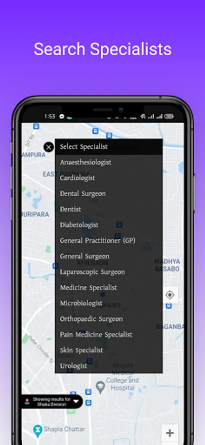 locate doctor's chamber in map, get chamber routs with ease.
