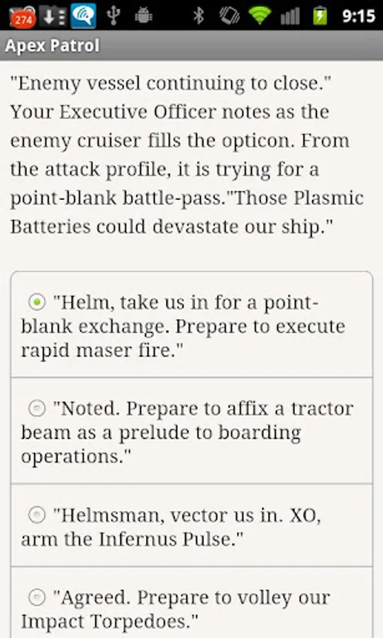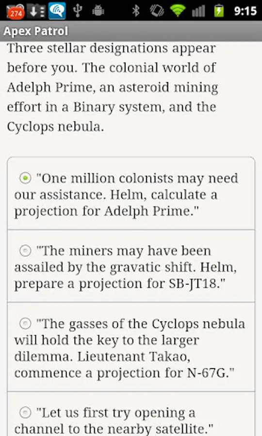 Command a star cruiser! Visit colonial worlds, rescue imperiled vessels, investigate stellar phenomena and prepare your ship to battle a ruthless foe. Only you and your crew can save Earth from utter destruction in this text-based adventure.