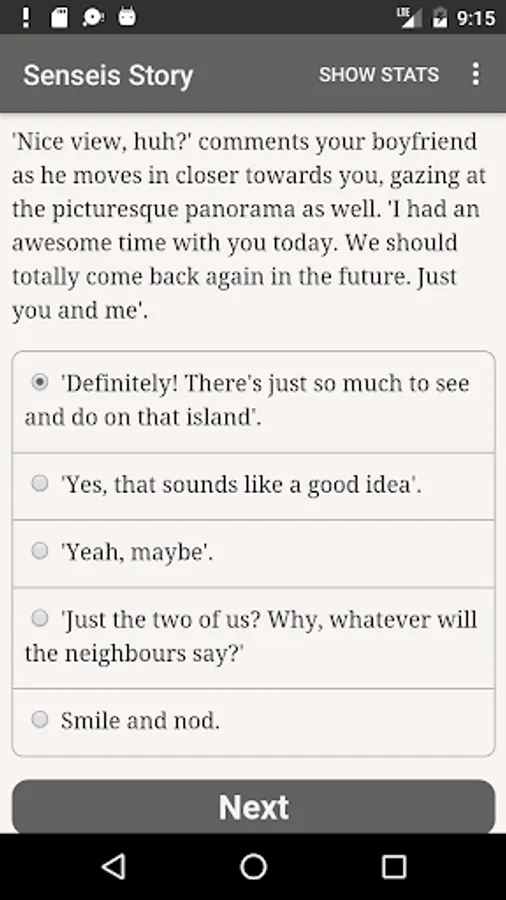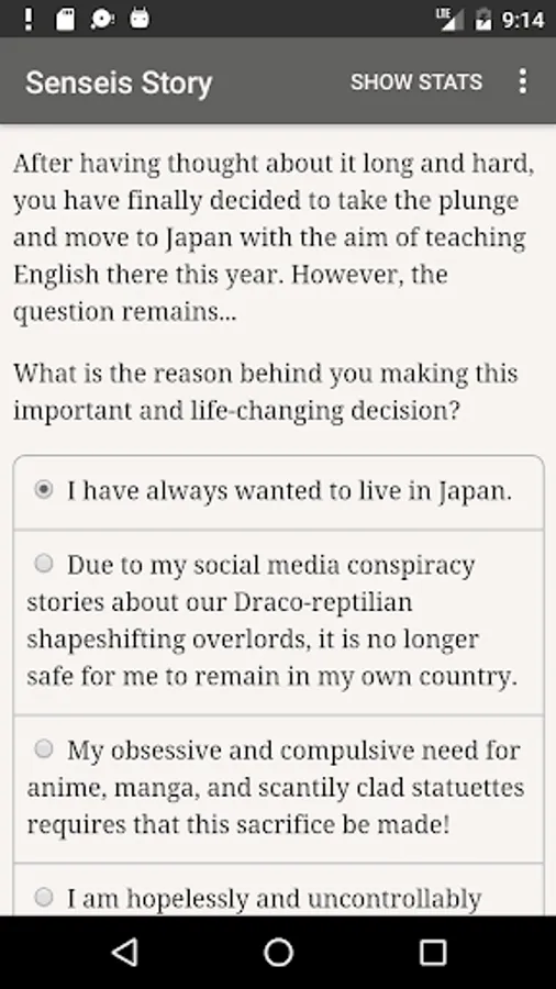 "A Sensei's Story" is a 240,000 word interactive novel by Dom Fella, where your choices control the story. It's entirely text-based—without graphics or sound effects—and fueled by the vast, unstoppable power of your imagination.