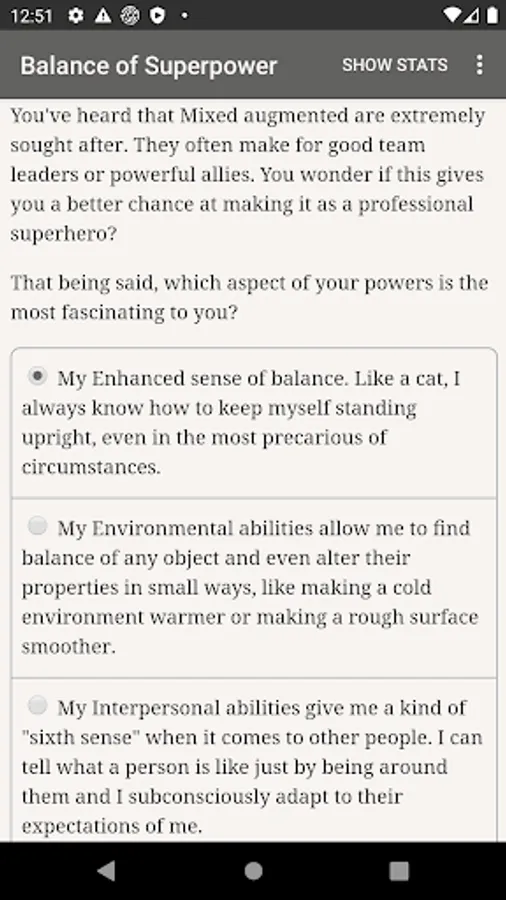 Balance of Superpower is a 60,000-word interactive sci-fi romance novel by Rustem Khafizov. It’s entirely text-based, without graphics or sound effects, and fueled by the vast, unstoppable power of your imagination.